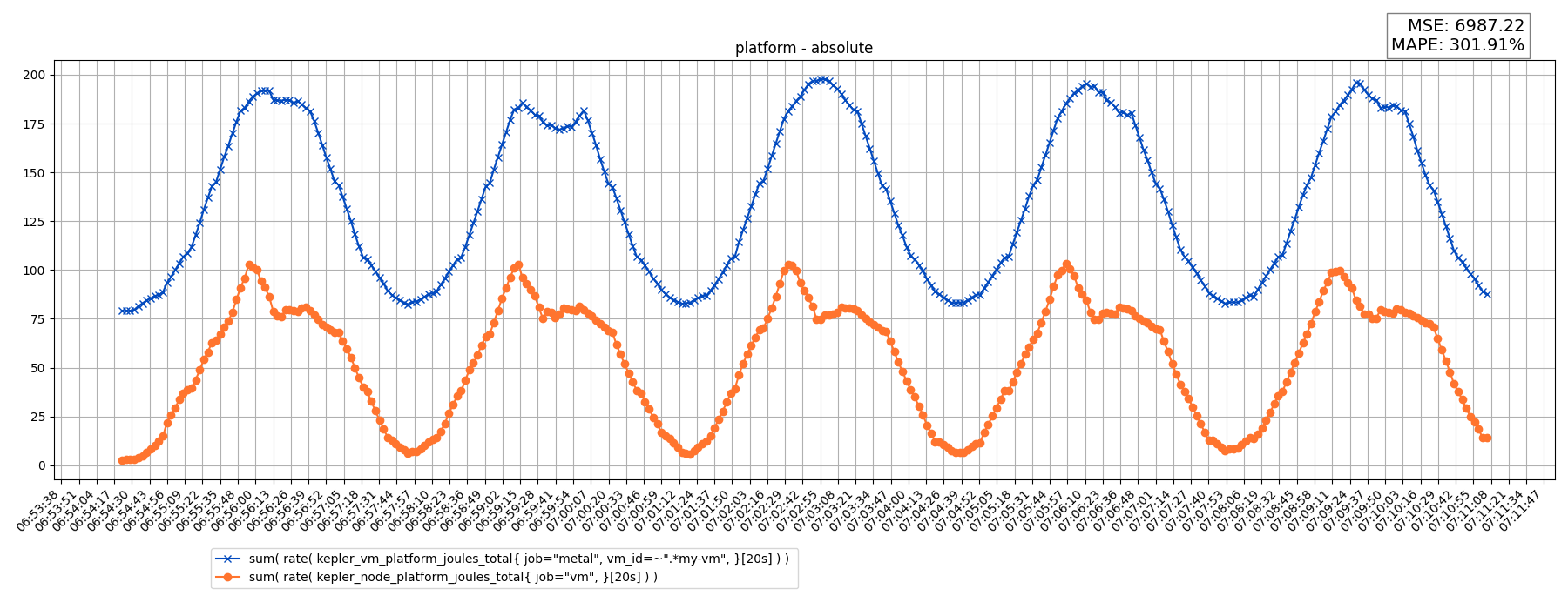 rate( kepler_vm_platform_joules_total{ job="metal", vm_id=~".*my-vm", mode="dynamic", }[20s] ) rate( kepler_node_platform_joules_total{ job="vm", mode="dynamic", }[20s] ) Results: