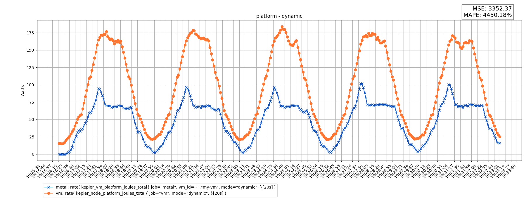 rate( kepler_vm_platform_joules_total{ job="metal", vm_id=~".*my-vm", mode="dynamic", }[20s] )rate( kepler_node_platform_joules_total{ job="vm", mode="dynamic", }[20s] )Results: