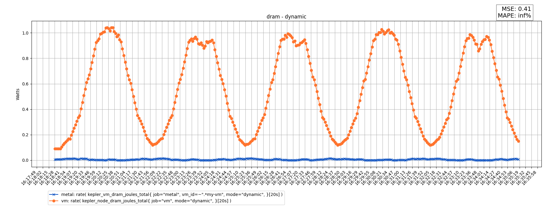 rate( kepler_vm_dram_joules_total{ job="metal", vm_id=~".*my-vm", mode="dynamic", }[20s] )rate( kepler_node_dram_joules_total{ job="vm", mode="dynamic", }[20s] )Results: