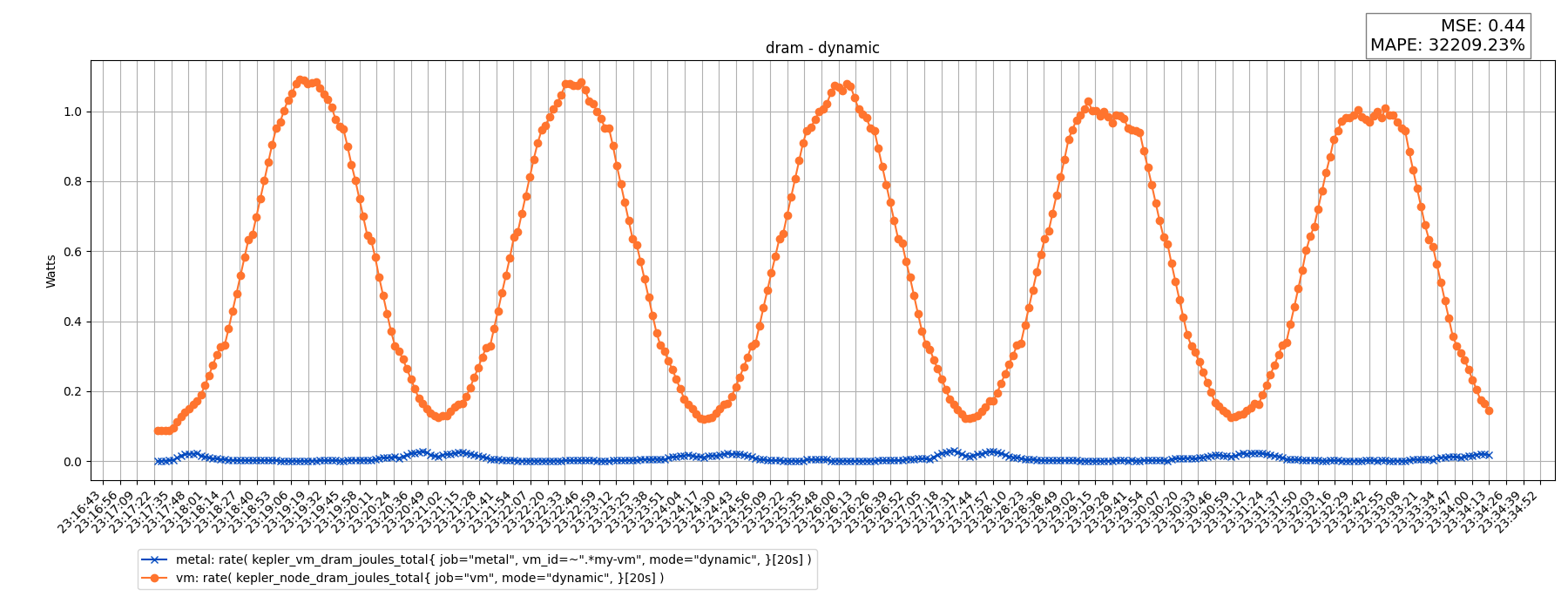 rate( kepler_vm_dram_joules_total{ job="metal", vm_id=~".*my-vm", mode="dynamic", }[20s] )rate( kepler_node_dram_joules_total{ job="vm", mode="dynamic", }[20s] )Results: