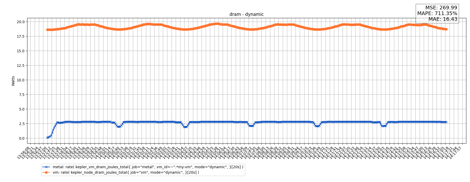 rate( kepler_vm_dram_joules_total{ job="metal", vm_id=~".*my-vm", mode="dynamic", }[20s] )rate( kepler_node_dram_joules_total{ job="vm", mode="dynamic", }[20s] )Results: