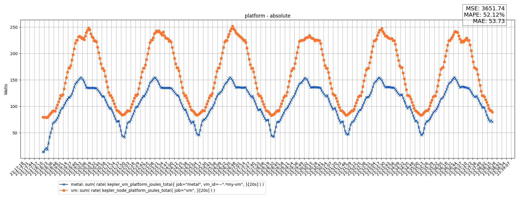 rate( kepler_vm_platform_joules_total{ job="metal", vm_id=~".*my-vm", mode="dynamic", }[20s] )rate( kepler_node_platform_joules_total{ job="vm", mode="dynamic", }[20s] )Results: