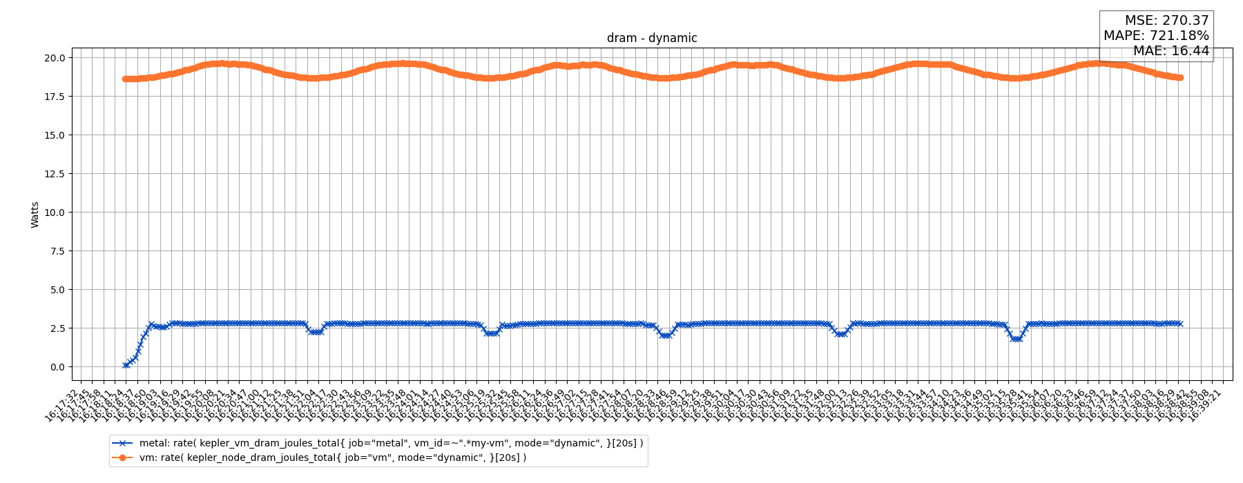 rate( kepler_vm_dram_joules_total{ job="metal", vm_id=~".*my-vm", mode="dynamic", }[20s] )rate( kepler_node_dram_joules_total{ job="vm", mode="dynamic", }[20s] )Results: