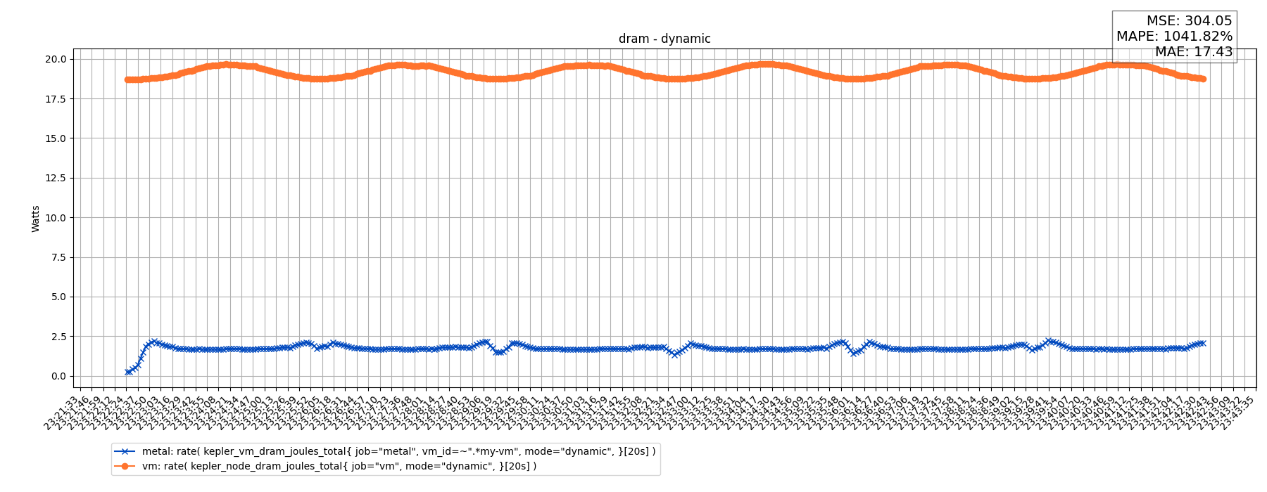 rate( kepler_vm_dram_joules_total{ job="metal", vm_id=~".*my-vm", mode="dynamic", }[20s] )rate( kepler_node_dram_joules_total{ job="vm", mode="dynamic", }[20s] )Results: