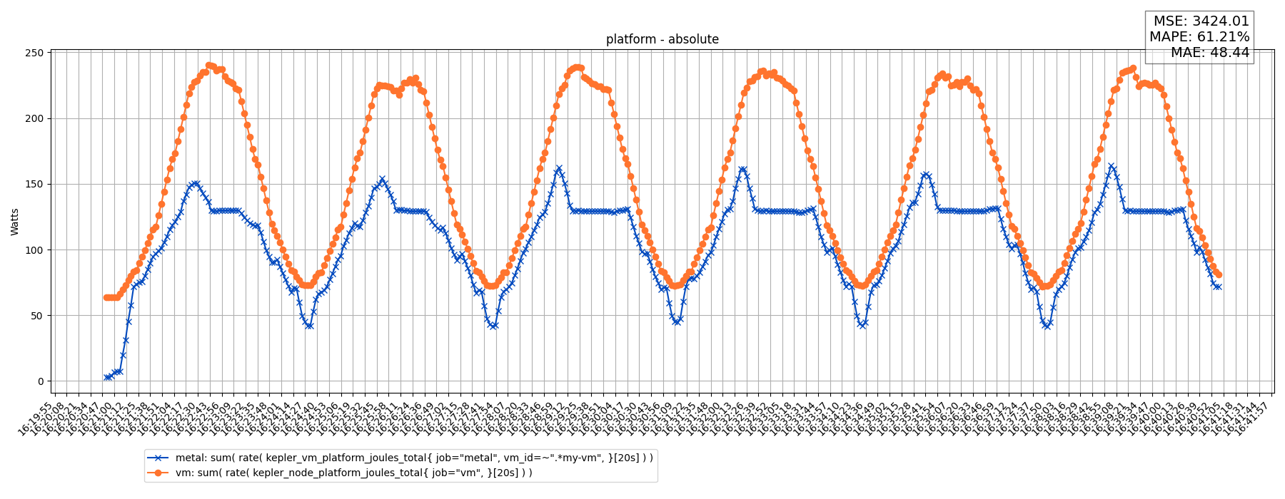 rate( kepler_vm_platform_joules_total{ job="metal", vm_id=~".*my-vm", mode="dynamic", }[20s] )rate( kepler_node_platform_joules_total{ job="vm", mode="dynamic", }[20s] )Results: