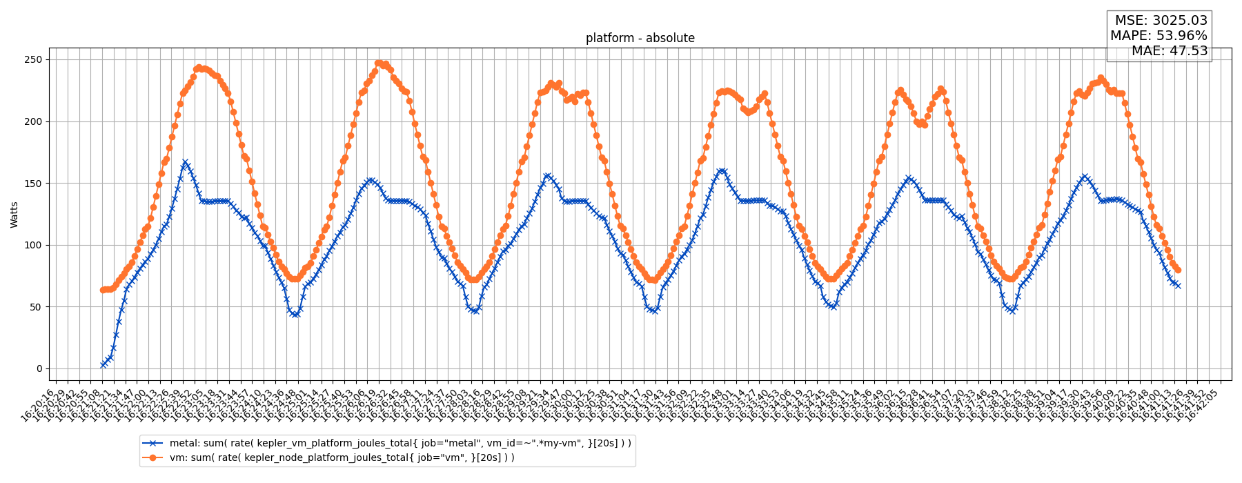 rate( kepler_vm_platform_joules_total{ job="metal", vm_id=~".*my-vm", mode="dynamic", }[20s] )rate( kepler_node_platform_joules_total{ job="vm", mode="dynamic", }[20s] )Results: